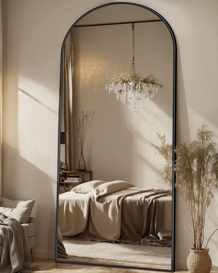 Make every outfit and moment count with the 71″ x 28″ full-length arched mirror in a sleek black finish. This versatile mirror serves as a functional focal point in bedrooms, living rooms, and dressing areas, while brightening and visually expanding your space with a crisp, distortion-free reflection. * Oversized, full-length reflection: 71″ x 28″ view for a complete head-to-toe look. * Arched top design: Adds a sophisticated, modern touch to any room. * Lightweight aluminum alloy frame: Durable, slim profile that’s easy to move and adjust. * HD imaging & explosion-proof glass: Clear, distortion-free reflections with shatterproof safety. * Versatile placement: Tilt to lean against a wall, wall-mount vertically, or stand with the included bracket. * Easy installation: Comes with hooks for simple wall mounting. * Multi-functional use: Ideal for bedrooms, living rooms, dressing areas, and more. * Space-enhancing: Reflects light to make rooms feel larger and brighter. * Safe and durable: Rust-proof materials with a sturdy black finish. Category: Home & Garden > Decor > Mirrors Lifestyle benefit: Create a brighter, more open space that elevates daily routines and boosts your confidence as you get ready each day.